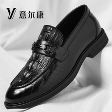 男鞋春秋新款商务正装皮鞋男士真皮防滑套脚休闲鳄鱼纹潮鞋