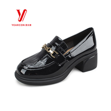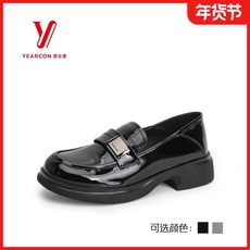 秋季新款女鞋时尚英伦风亮皮鳄鱼纹乐福鞋
